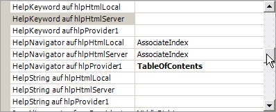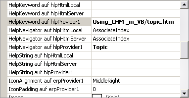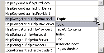 Der nächste Schritt soll die HelpNavigator Eigenschaft eines Steuerelements (z.B. Button) auf einem Wert der HelpNavigator-Enumerations (siehe Tabelle unten) einstellen. Hier verwenden wir Topic. Dann setzen wir die HelpKeyword auf hlpHtmlSever Eigenschaft auf z.B. "anchor3". Fügen Sie kein führendes "#" hinzu. Lassen Sie es leer, wenn Sie eine HTML Datei ohne Anker öffnen wollen. Die HelpKeyword Eigenschaft liefert die Schlüsselinformation, um die mit dem Steuerelement verbundene Hilfe wieder aufzufinden.