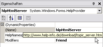 | Eigenschaften für die Anzeige von Hilfe (HTML Datei - Server http://..) |
