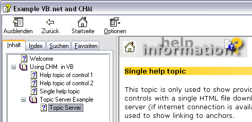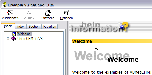 Wenn Sie kein Visual Studio NET besitzen aber das Microsoft NET Framework 1.0 installiert haben (z.B. von der CD-Version des Windows XP SP1) können Sie das Beispiel für Visual Basic 2002 entpacken und die Datei VBnetCHM.exe im Unterverzeichnis "../bin" doppelklicken.