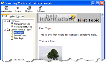 Since XML is at the root of single-sourcing formats, you want to be using standard coding with no proprietary features. So, make "clean" HTML or XHTML code and avoid creative coding, which can cause trouble porting to any future platform like XML, other lanuages or XML subsets like DocBook, DITA or AML. You can check thsi by Tidy. Converting WinHelp (HLP) to HTMLHelp (CHM) by using a decompiler or old WinHelp projects I described separately before. Some examples below are related to this article.