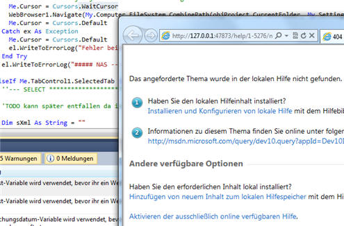 Fehlende Direkthilfe in Microsoft Visual Basic Express wiederherstellen